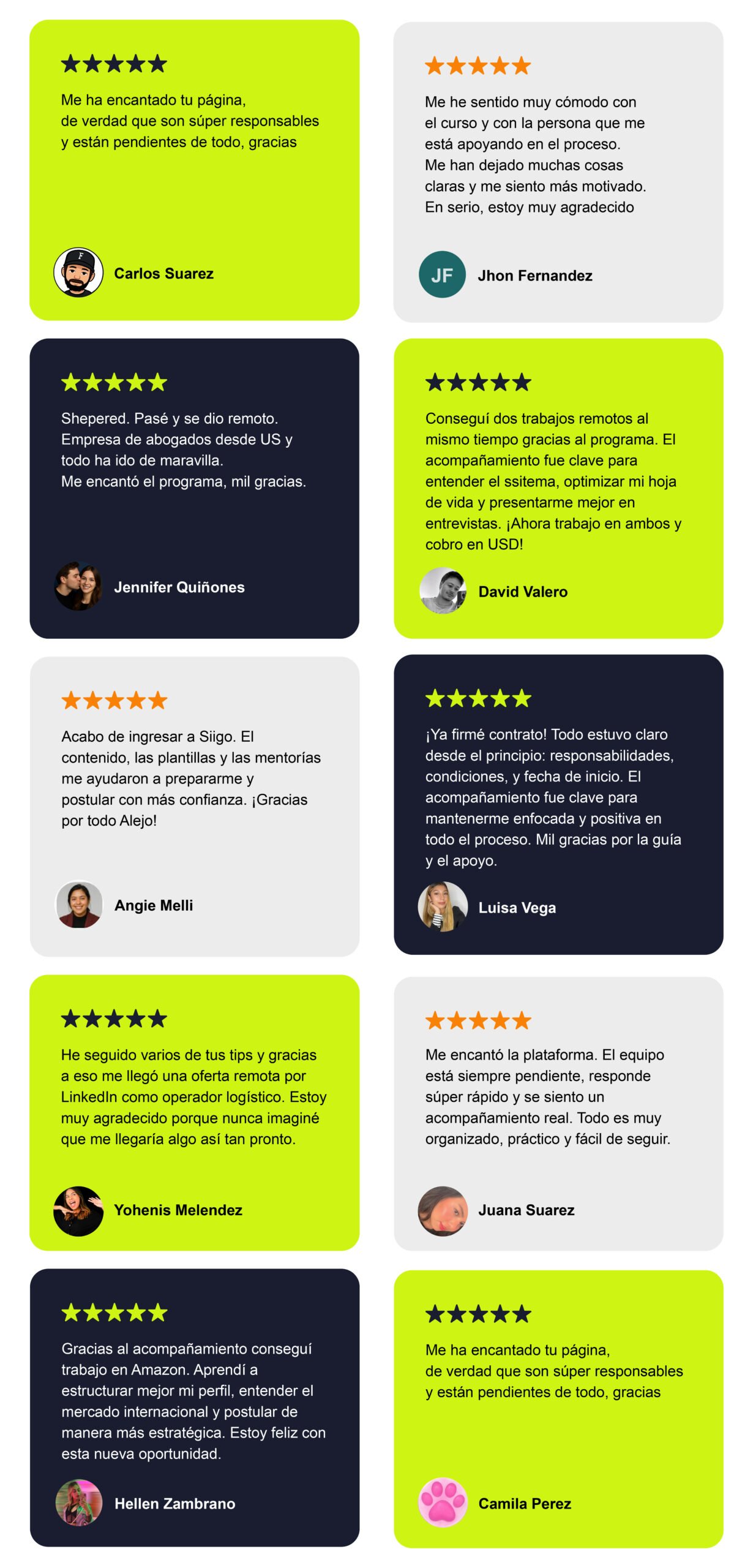 Además, si escoges el programa de $29 USD o $47 USD, contarás con el acompañamiento de expertos hasta que consigas el trabajo que estás buscando.